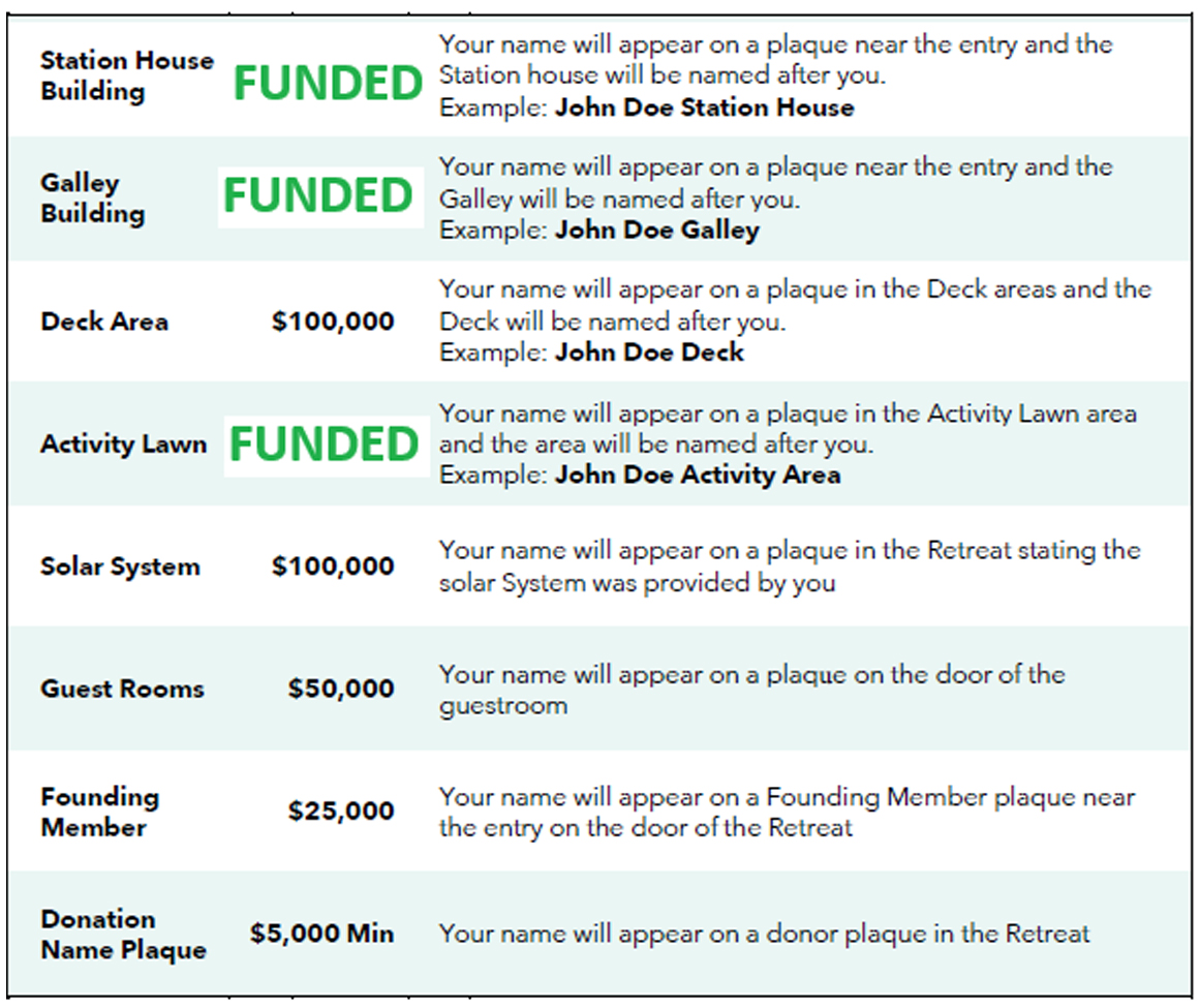 All Donations of $25,000 or more include the lifetime use of the “Foundation Room” based on availability